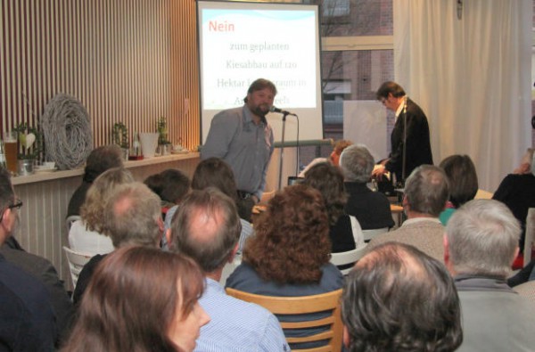 Gestern Abend formierte sich massiver Widerstand gegen die geplante Erweiterung des Kiesabbaus in der Anholter Breels. In der Bürgerversammlung im Cafe Röschen, das für die rund 100 Besucher fast zu klein war, machten verschiedene Redner deutlich, dass Gewinnsucht einzelner Unternehmen kein Freifahrtschein zur Naturzerstörung sein kann.