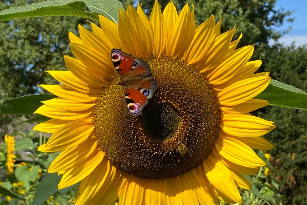 Janina Methling: „Das habe ich an der Wildblumenwiese in Werth zwischen der Isselschule (Container) und dem Sportplatz gemacht. Habe lange ausharren müssen, bis der Schmetterling endlich auf der Sonnenblume „Platz“ genommen hat.“ (Foto: Janina Methling)