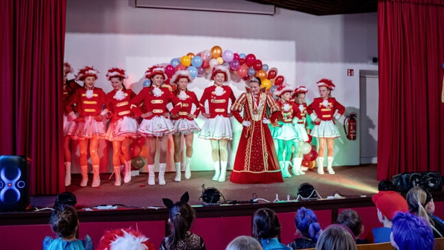 Es folgten die Tanzeinlagen der Isselburger Mini-Garde und der Junior-Garde. Eine Zugabe und viel Beifall schlossen sich an. Danach kündigte Melanie Meyer die Garde aus Dingden, die schon zu den Stammgästen zählt. Gleiches gilt für die rot-weiß gekleidete Garde aus Haffen, die – unterteilt in drei Altersgruppen – gleich mit 52 Tänzerinnnen nach Isselburg gekommen waren. Es wurde daher ziemlich eng auf der Bühne. Wie bei den Dingdenerinnen, so wurde auch bei den Tänzerinnen aus Haffen von den Besuchern vehement eine Zugabe gefordert.